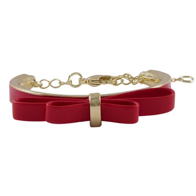 Dlux Jewels 4.5 x 1 Red Bow & Red Enamel Gold Plated Brass Bangle Bracelet