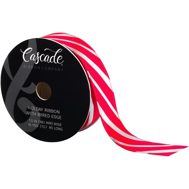 Fair Isle CA103388 1.5 in. x 20 Yards White, Red & Green Satin Holiday Ribbon with Wired Edge
