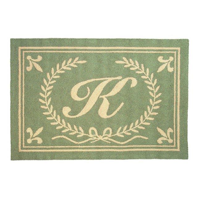 123 Creations C236RR Green Intial R Hook Rug