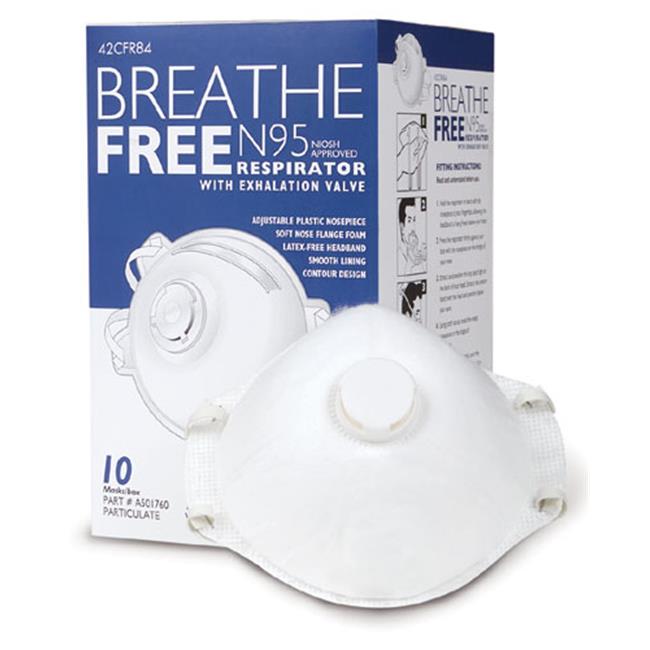 N95 Respirator Mask with Valve Breathe-Free - Box of 10 - 93B