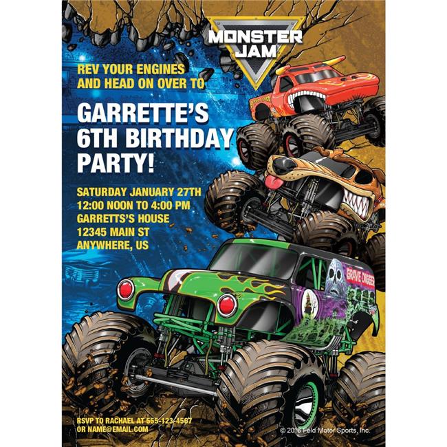 BuySeasons 267666 Monster Jam Personalized Invitation
