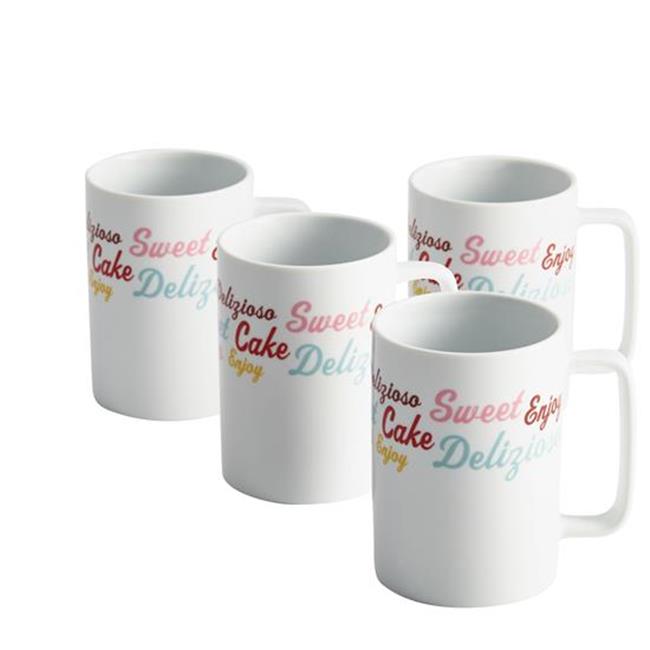 Cake Boss 58677 Serveware 4-Piece Porcelain Mug Set, Icing & Quotes Pattern, Print
