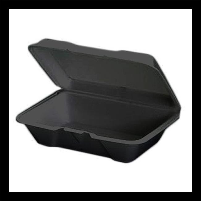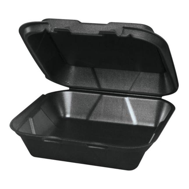 Genpak 20500-3L 9 x 6 in. Large Hinged Foam Container, Black - Case of 200