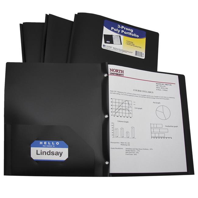 C-Line Products 1597277 Two-Pocket Heavyweight Poly Portfolio Folder with Prongs, Black - Pack of 25