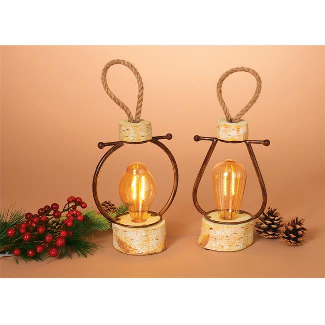 Gerson 9438821 14 in. Resin Log with Edison Bulb Christmas Lantern Brown Glass & Resin - pack of 2