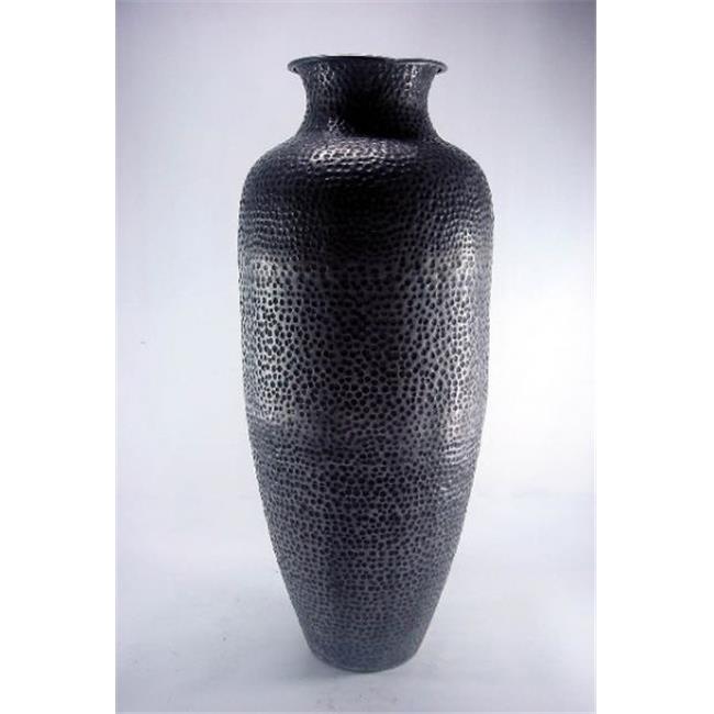 Distinctive Designs 12-29058 Meridian Black Antique Pewter Hand Hammered Vase with Aluminum Base - Metallics