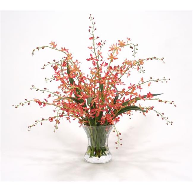 Distinctive Designs 15577A Waterlook Coral Vanda Orchids in Hourglass Vase - Oranges