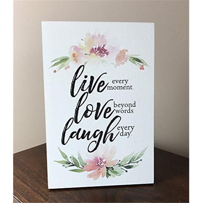 Lela & Ollie 9814 6 x 9 in. Live Every Moment, Love Beyond Words & Laugh Every Day Wood Plaque with Easel