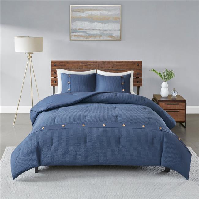 Madison Park MP10-5633 Rianon Cotton Waffle Weave Comforter Set, Navy - King & Cal King - 3 Piece