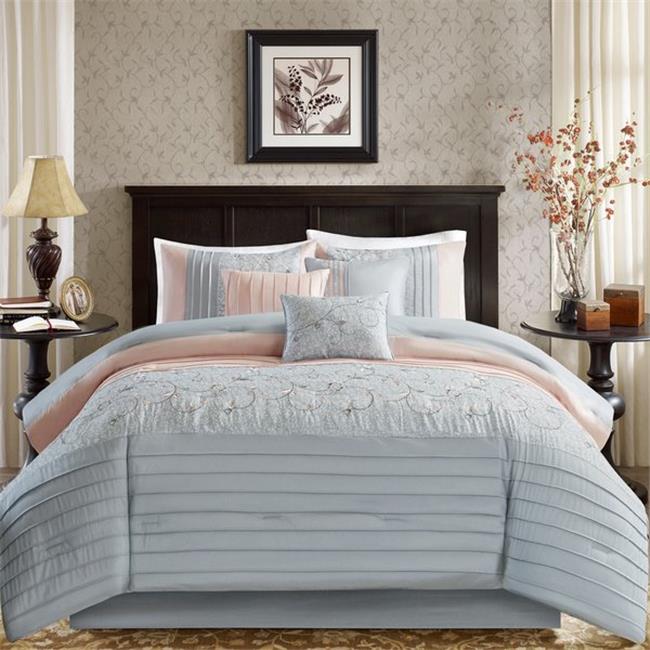 Madison Park MP10-5856 Belle Embroidered Comforter Set, Blush - Cal King - 7 Piece