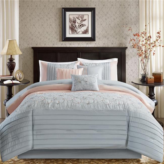 Madison Park MP10-5855 Belle Embroidered Comforter Set, Blush - King - 7 Piece