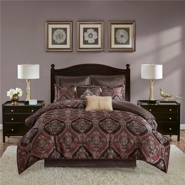 Madison Park MP10-5888 Thane Chenille Jacquard Comforter Set, Red - Queen - 8 Piece