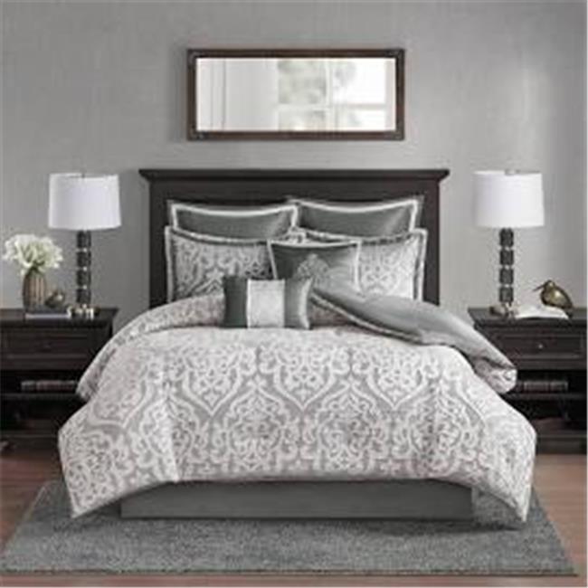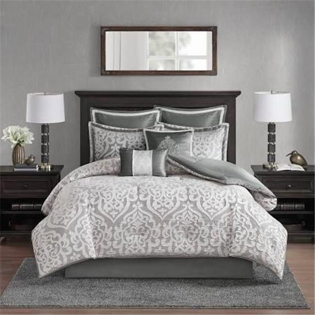 Madison Park MP10-5886 Dillon Jacquard Comforter Set, Silver - King - 8 Piece