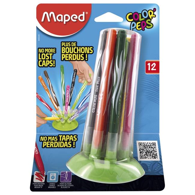 Maped Helix USA 1588288 ColorPeps Washable Fine Tip Markers with Stand - Set of 12