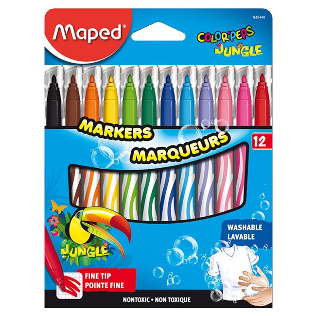 Maped Helix USA 1567812 Color Peps Jungle Fine Tip Washable Markers, Set of 12