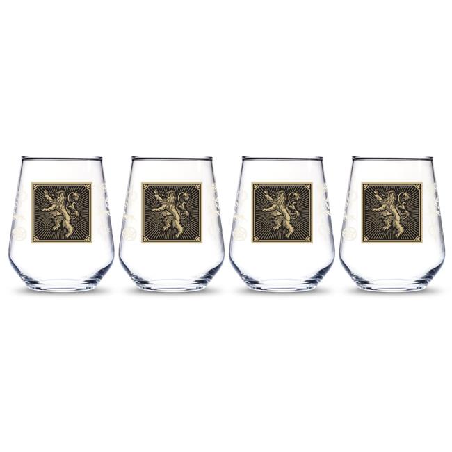Game of Thrones 888568622519 Lannister Relief Emblem Stemless Wine Glass - Pack of 4