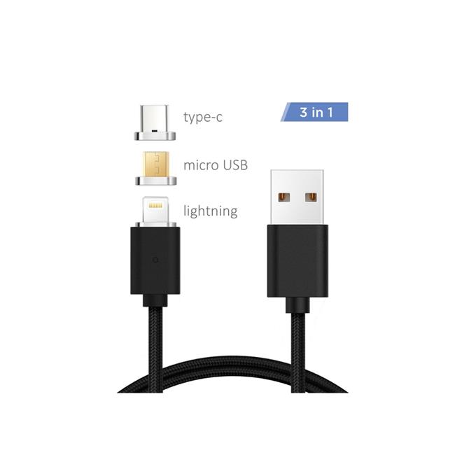 Xtrempro 11172 3-in-1 Magnetic Cable Type-C Micro USB & Lightning, 3 ft. - Black