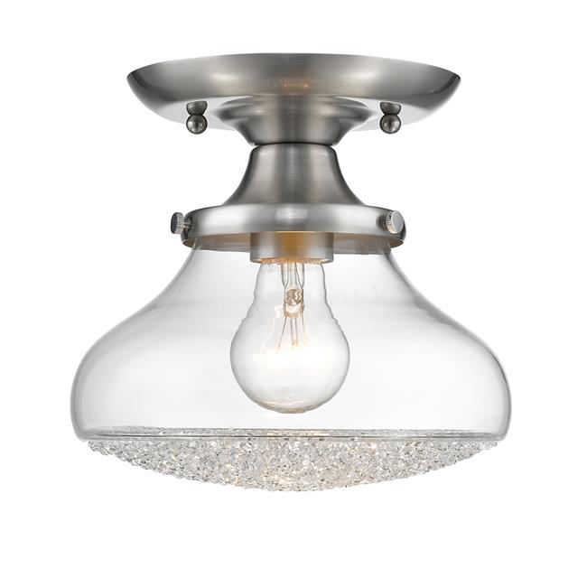 Golden Lighting 3417-SF PW-CC Asha Small Semi Flush, Pewter & Crushed Crystal Glass
