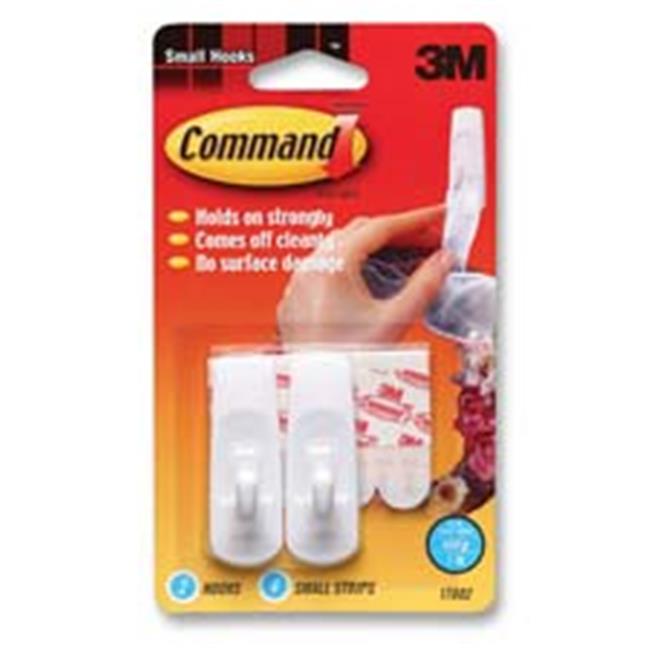 3M MMM17002 Command Hooks- Small- 1lb. Capacity- 2 Hooks-4 Strips