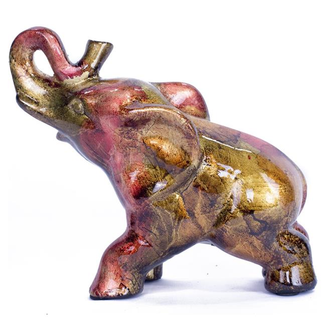 Heather Ann W071352-06 8 in. India Decorative Ceramic Elephant, Copper, Red & Gold