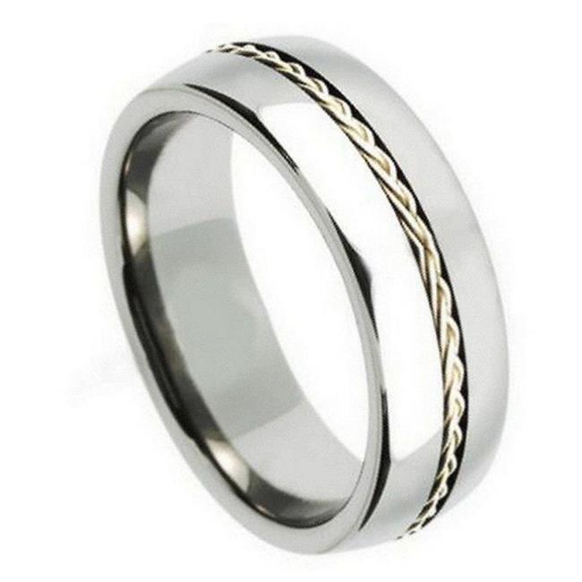 TK Rings 217TR-8mmx9.5 8 mm Grooved with Braided Sterling Silver Insert Tungsten Ring - Size 9.5