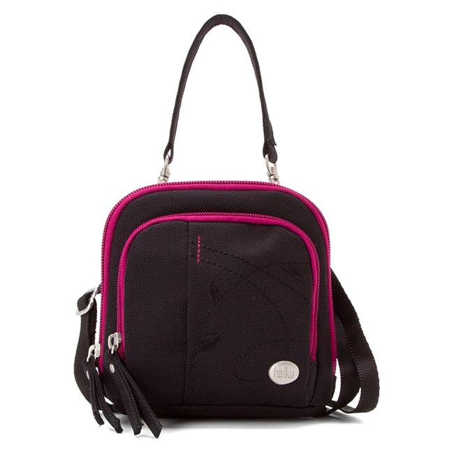 Haiku HK044-BLK Womens Pouch Mini Eco Crossbody Bag, Black & Magenta