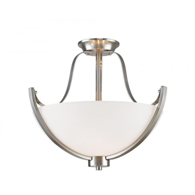 Zlite 308SF-BN Cosmopolitan 3 Light Semi-Flush Mount in Brushed Nickel with White Shade