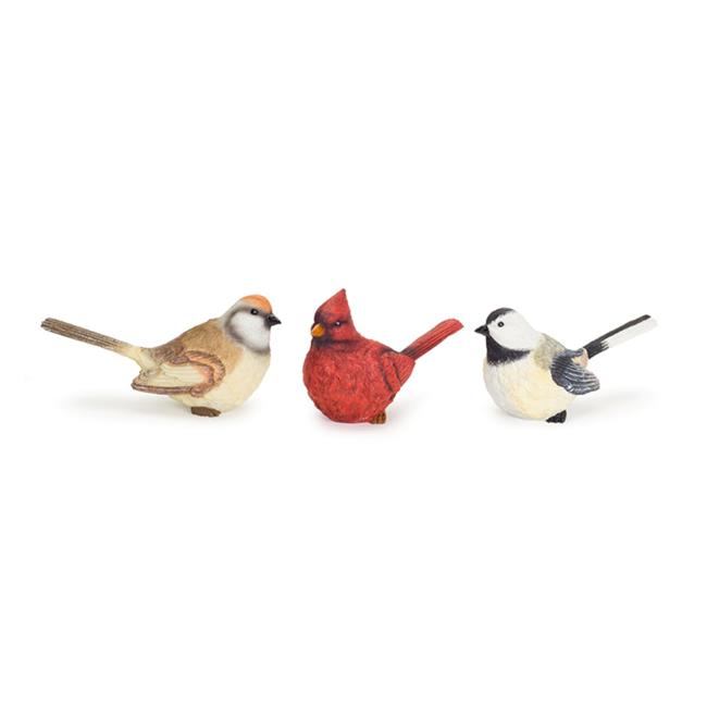 Melrose International 73535DS 4.5 x 3 in. Stone Powder Bird, Red & White - Set of 3