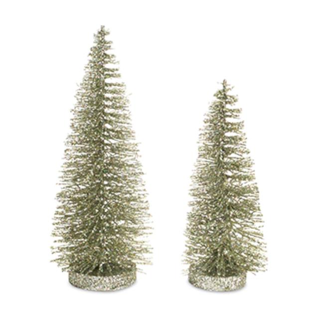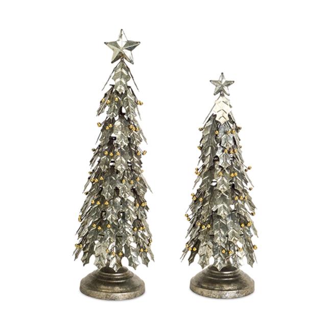 Melrose International 73561DS 15 x 18 in. Metal Holly Leaf Tree, Silver & Gold - Set of 2