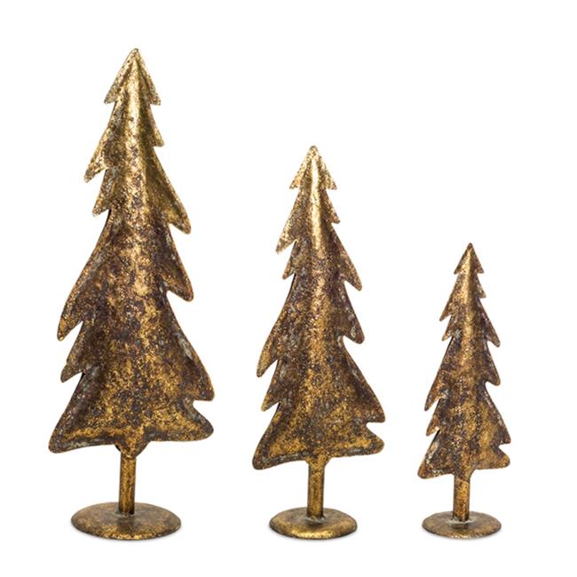 Melrose International 73570DS 13 x 17.5 x 22 in. Metal Tree Novelty Christmas Toy, Brown & Gold - Set of 3