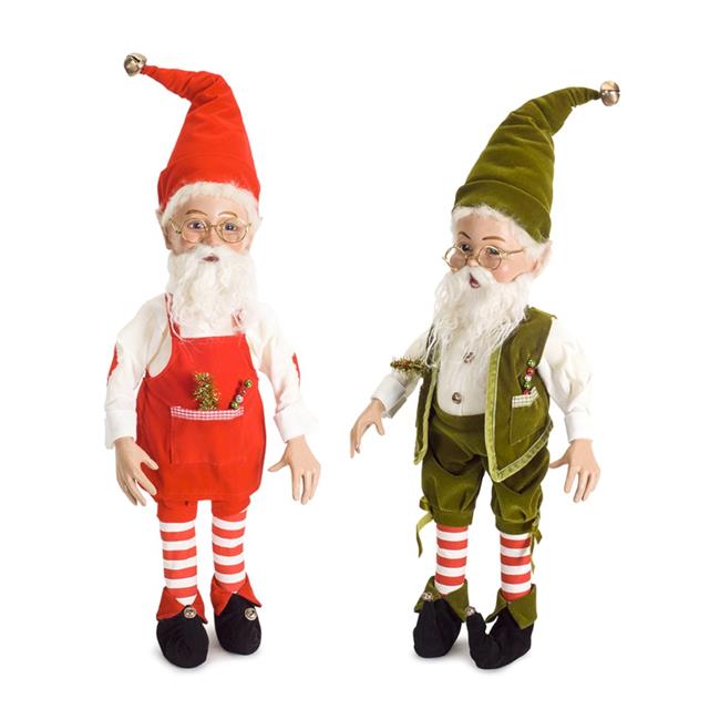 Melrose International 72200DS 25.5 x 6 in. Polyester & Resin Elves, Green & Red - Set of 2
