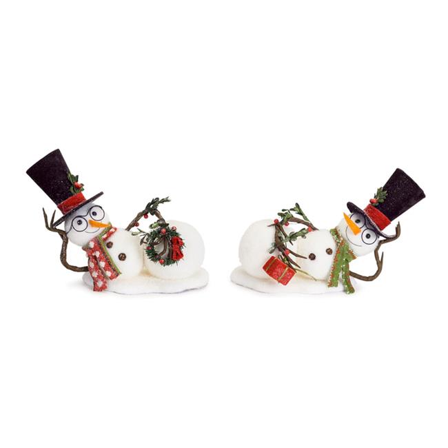 Melrose International 72351DS 10 x 5 in. Foam Snowman Laying Down, Red & Green - Set of 2