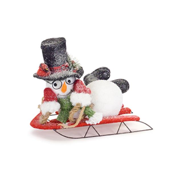 Melrose International 72399DS 10 x 6.25 in. Foam & Flocking Snowman on Sled Toy, White & Black - Set of 2