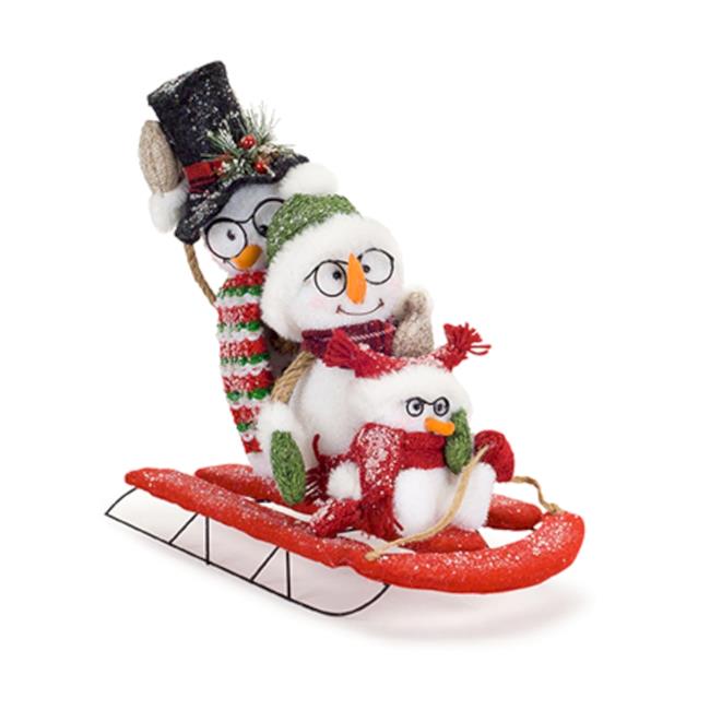 Melrose International 72400DS 14 x 6.75 in. Foam & Flocking Snowman Family on Sled Toy, White & Red