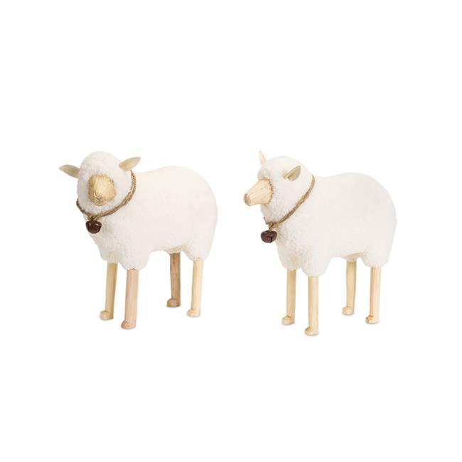 Melrose International 72445DS 11.5 x 3.5 in. Wood Sheep Novelty, White & Brown - Set of 2