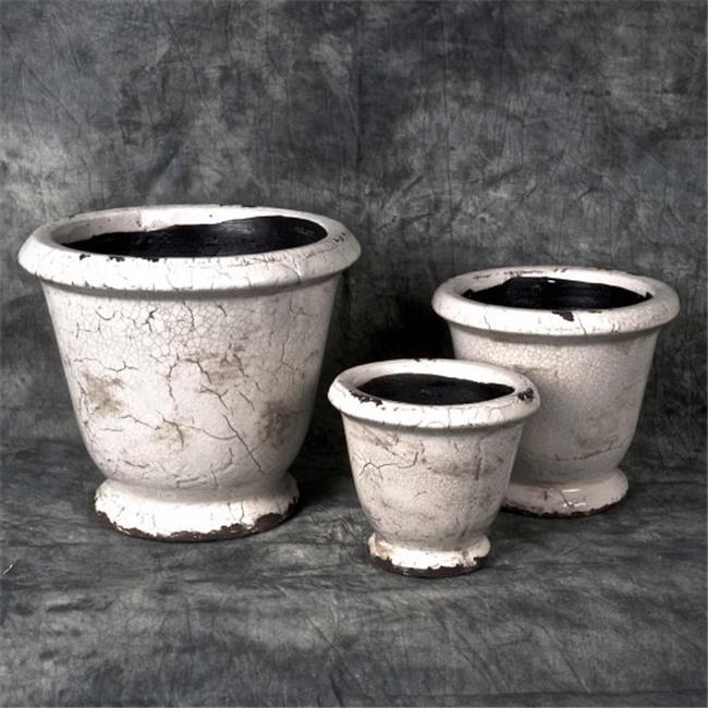 Hi-Line Gift E09P16008G018 Cracked Glaze Ceramic Flower Pot - Antique Beige, Set of 3