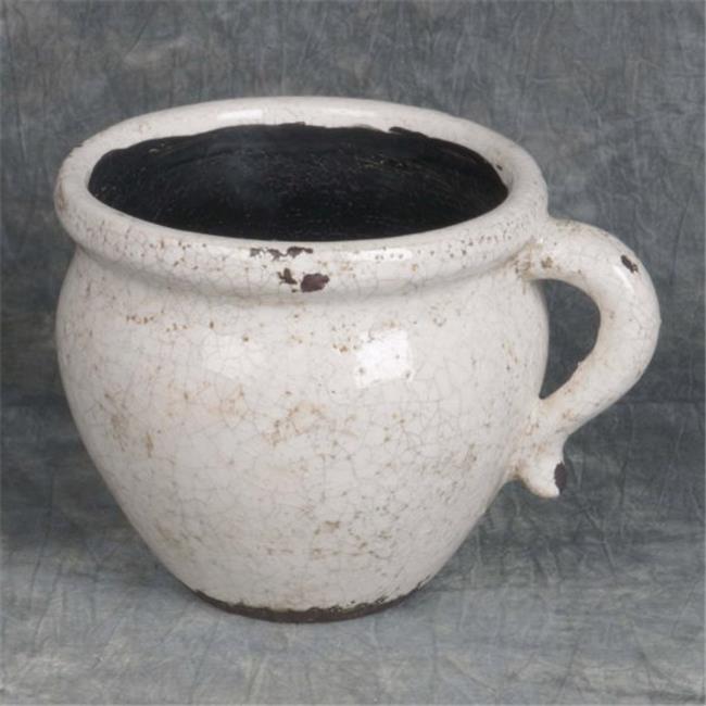Hi-Line Gift E9P16018G018-2 Cracked Glaze Ceramic Flower Pot - Medium, Antique Beige