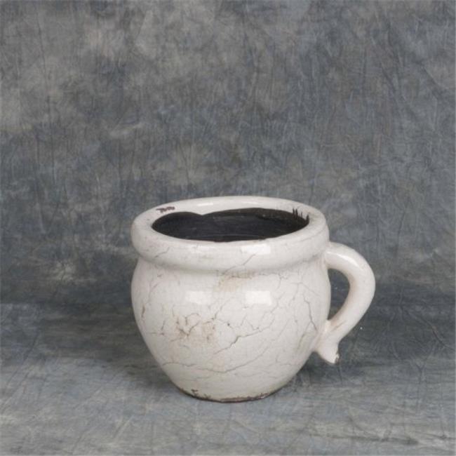 Hi-Line Gift E9P16018G018-3 Cracked Glaze Ceramic Flower Pot - Small, Antique Beige