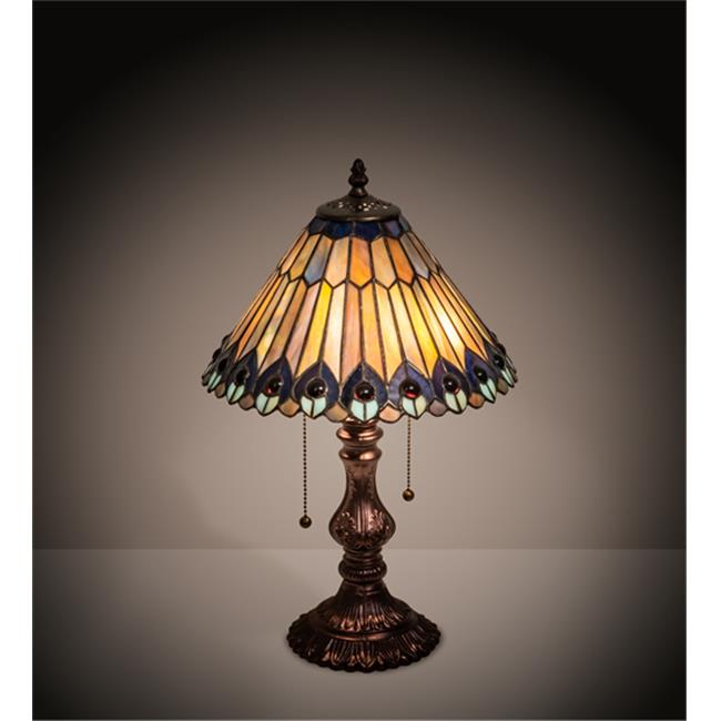 Meyda Tiffany 217002 19 in. High Tiffany Jeweled Peacock Accent Lamp, Multi Color