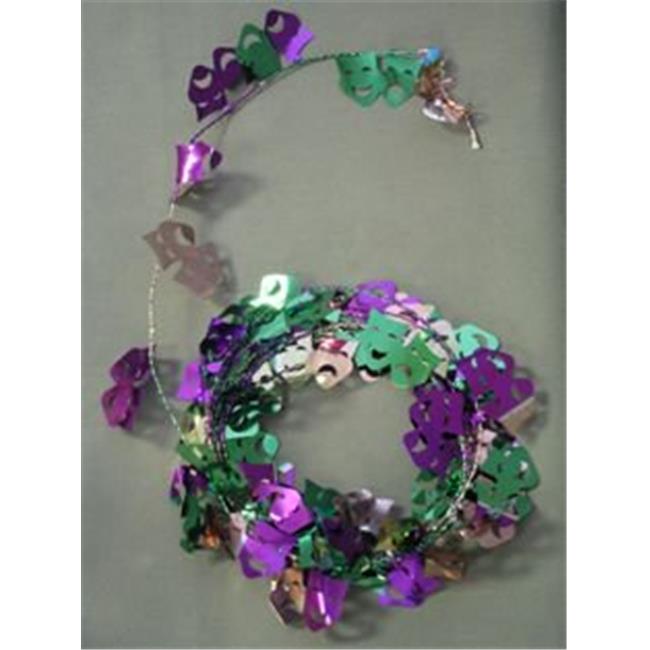 Party Deco 04532 9 ft. Purple- Green and Gold Comedy/Tragedy Faces Wire Garland - Pack of 12