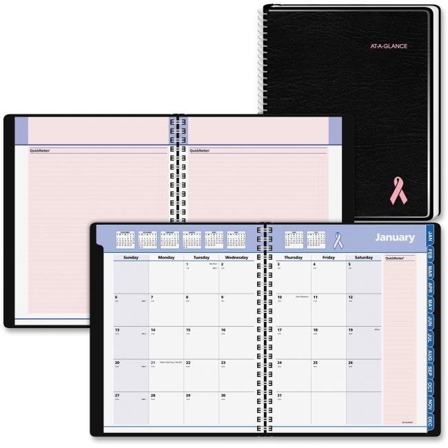 At A Glance AAG76PN0605 8 x 11 in. Quick Notes Breast Cancer Awareness Monthly Planner, Simulated Leather - Black