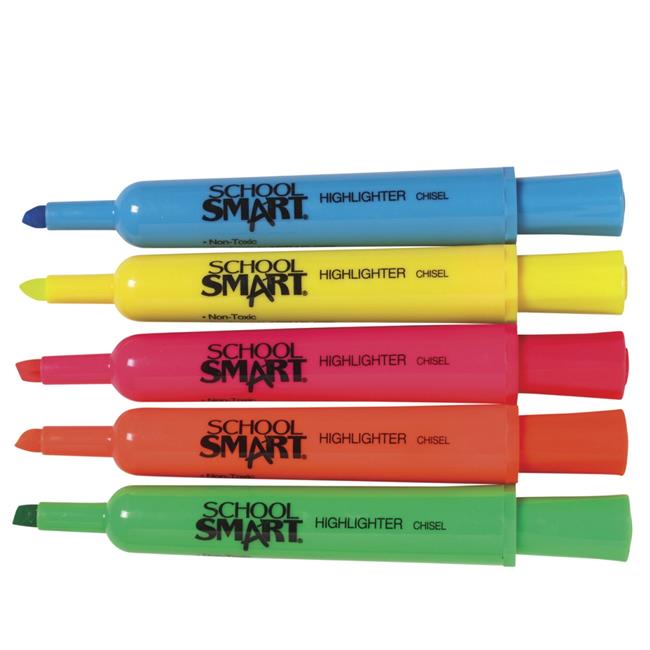 Beifa Group 1593073 School Smart Highlighter, Chisel Tip, Pen Style, Assorted - Pack of 48