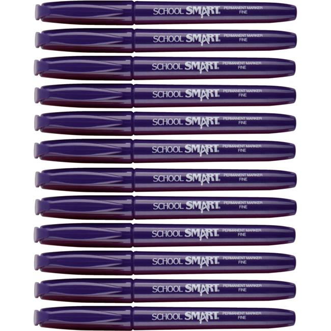 Beifa Group 1593075 School Smart Non-Toxic Quick-Drying Water Resistant Permanent Marker, 1.0 mm Fine Tip, Purple - Pack of 12