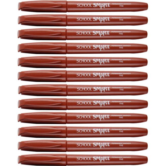Beifa Group 1593076 School Smart Non-Toxic Quick-Drying Water Resistant Permanent Marker, 1.0 mm Fine Tip, Brown - Pack of 12