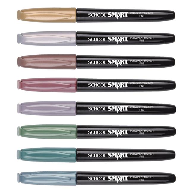 Beifa Group 1593077 School Smart Non-Toxic Quick-Drying Water Resistant Permanent Marker, 1.0 mm Fine Tip, Metallic, Set of 8