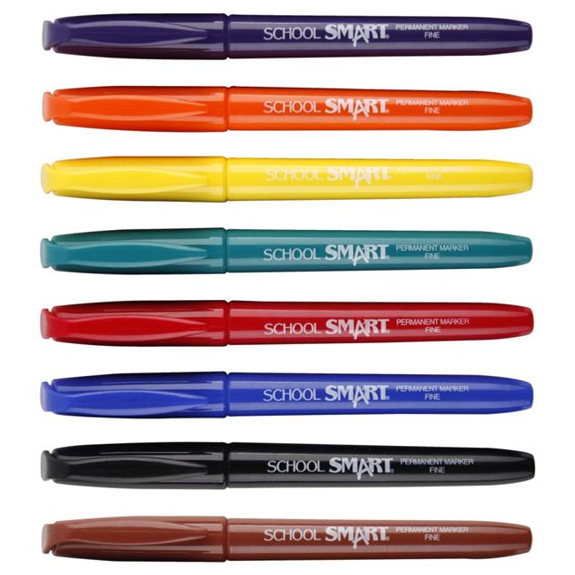 Beifa Group 1593078 School Smart Non-Toxic Quick-Drying Water Resistant Permanent Marker, 1.0 mm Fine Tip, Assorted, Set of 8