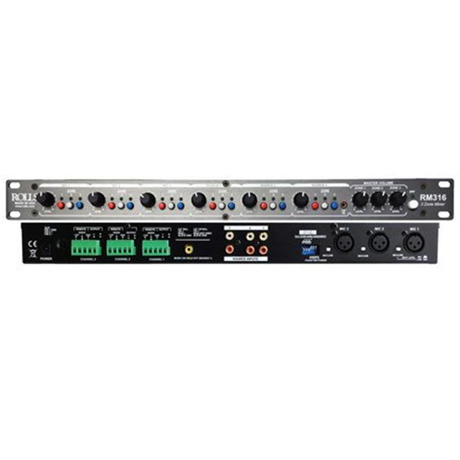 Rolls RM316 Three Zone Mixer - Microphones or XLR Line Level Signals with Three RCA Line Level Source Inputs
