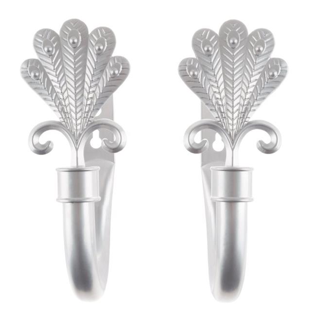 Lavish Home 63-17007A-SI Decorative Drape Tieback Hooks of Curtain Holdbacks with Mounting Hardware & with Swirl Finials, Silver - Set of 2