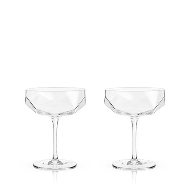Viski 6267 7 oz Raye Faceted Crystal Coupe Glass, Clear - Set of 2