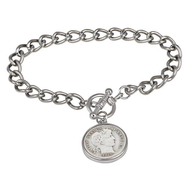 UPM Global 15313 7 in. Silver Barber Dime Silvertone Coin Toggle Bracelet
